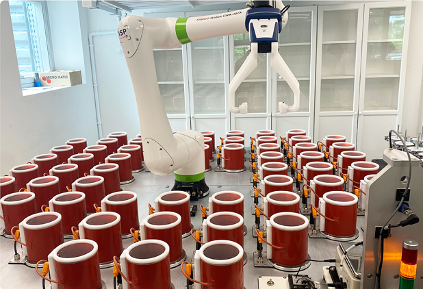 Es sistema incluye 60 fermentadores de vidrio de 1 litro, cada uno equipado con controles de temperatura individuales. Un brazo robotizado monitoriza continuamente la fermentación pesando los fermentadores, lo que permite seguir la transformación del azúcar en alcohol (y dióxido de carbono) a través de la pérdida de masa. Este monitoreo automático garantiza la fiabilidad y la precisión, dos elementos clave para la reproducibilidad de las pruebas.