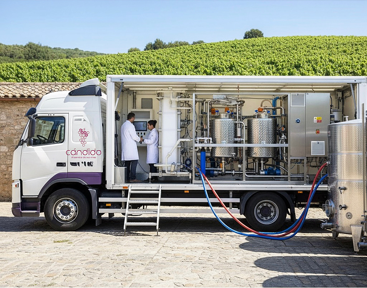 Además, Vinos Cándido ofrece como opcional la iltración previa al tratamiento, con sus propios equipos móviles, para asegurar la máxima eficiencia del proceso en vinos poco estabilizados.